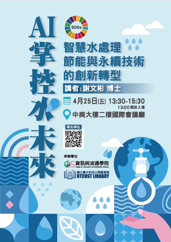 📍活動介紹: 這場講座將帶你深入了解AI如何幫助我們實現SDGs(永續發展目標),特別是在水處理和環保領域。圖書館邀請臥龍智慧環境的創辦人謝文彬博士,他將和大家分享AI技術如何讓水資源管理更有效率、節省能源,並推動我們邁向更永續的未來。這場講座不僅會介紹最新的科技趨勢,也希望能激發參與者的想法,讓大家知道如何運用AI技術來解決環境挑戰,成為改變世界的一份子。